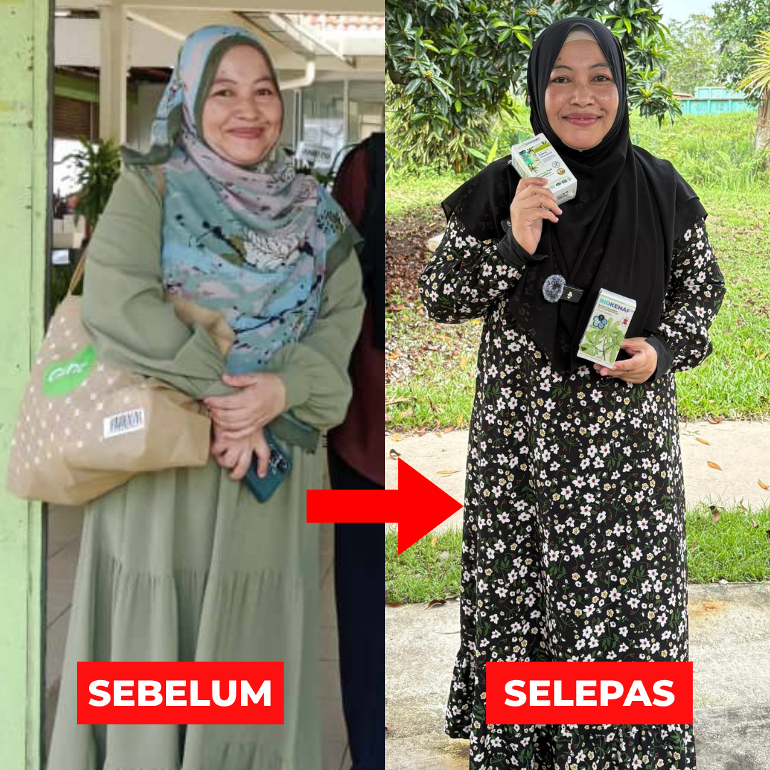 Puan Azmah teruja kongsi pengalaman buah pinggangnya yang tinggal 1 berfungsi efektif semula. Berat turun 10kg, kencing tak lagi berkapuh, bengkak kaki surut, & tiada lagi sakit kaki bila berjalan jauh.